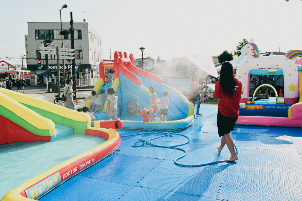 幼児から小学生低学年までのお子さんとその保護者が、5種類のウォータースライダーで遊ぶことができます。